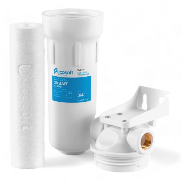 Магистральный фильтр Ecosoft FPV12PECO был разработан для работы при скачках давления, вплоть до 30 бар. Полипропиленовый картридж идущий в комплекте с фильтром обеспечит фильтрацию механических загрязнений размером свыше 5 мкм.