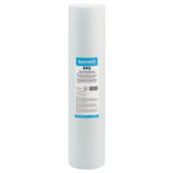 Картриджи механической очистки размера 20 Big Blue чаще всего используются как предварительная очистка воды перед более специализированным оборудованием. Специально для этих целей был изготовлен картридж Ecosoft PP5-20BB. Данная модель картриджа прекрасно справляется с удалением механических примесей (ил, ржавчина, песок) размером более 5 мкм и подходит к большинству магистральных фильтров размера 20 Big Blue.