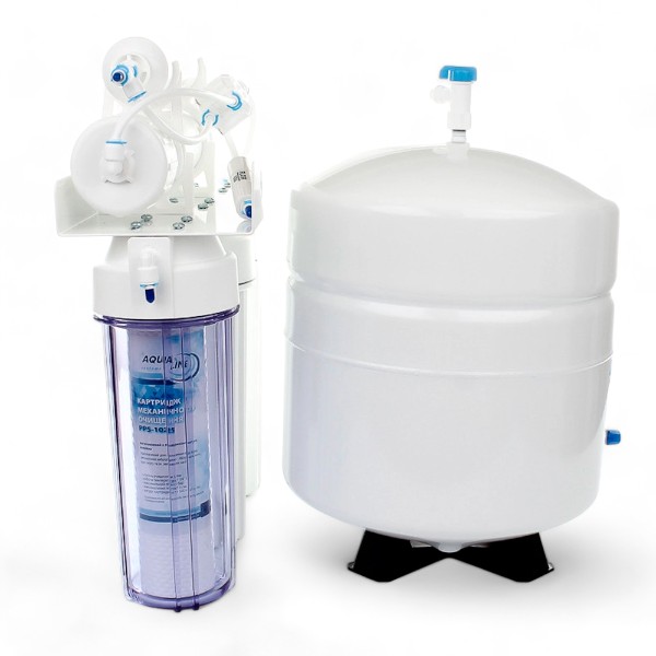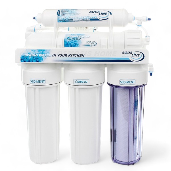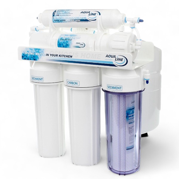 Система обратного осмоса Aqualine RO5 - надежный и качественный бытовой фильтр. Устанавливается под мойкой и имеет отдельный кран для полностью очищенной питьевой воды. Aqualine RO5 состоит из блока подготовки воды, блока основной очистки и блока кондиционирования воды. Фильтр обратного осмоса обеспечивает наиболее полную очистку воды от практически всех загрязнений (99,8% примесей удаляется), в том числе большинства вирусов и бактерий.