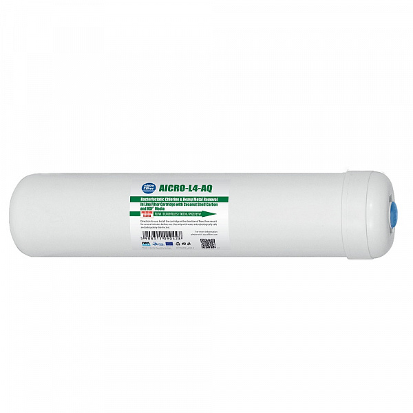 - AICRO-L4 - угольный картридж, KDF наполнитель. Высококачественный кокосовый уголь удаляет из воды хлор, его производные, органические загрязнения, а также пестициды. Благодаря специальному наполнителю KDF из воды удаляются бактерии.