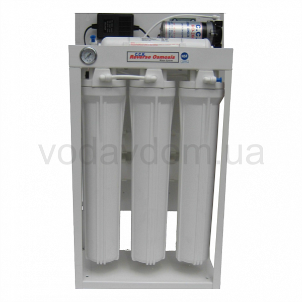 - Предварительная очистка. Перед очисткой воды обратноосматическими мембранами исходную воду следует очистить от механических и органических загрязнений для продления срока службы самих мембран. С этой задачей замечательно справляется трёхступенчатая система предварительной очистки состоящая из трёх колб размером 20” Slim. Колбы комплектуются картриджами: