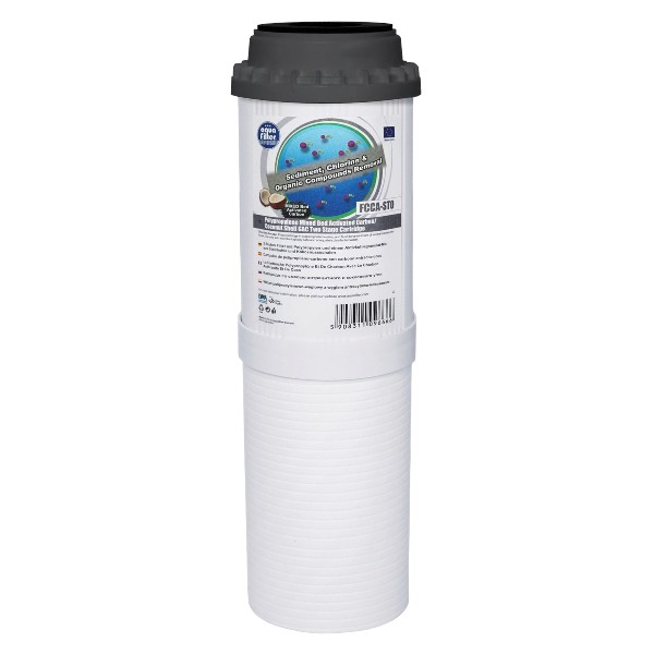 Картридж Aquafilter FCCA-STO предназначен для удаления хлора и органических загрязнений из воды в системах фильтрации типоразмера 10”. Данная модель картриджа состоит из трех фильтрующих материалов - прессованного полипропилена, высококачественного гранулированного активированного угля из кокосовой скорлупы (GAC), прошедшего международную сертификацию NSF и полипропиленового волокна. Благодаря этим наполнителям процесс очистки воды происходит наиболее эффективно. Первая стадия очистки состоит из полипропиленового картриджа со степенью очистки 10 мкм, прессованный полипропилен надежно задерживает механические и осадочные загрязнения (ил, песок, ржавчина). Далее гранулированный уголь абсорбирует органические загрязнения, хлор и некоторые пестициды, нормализует вкус и запах воды, а полипропиленовое волокно препятствует вымыванию активированного угля.