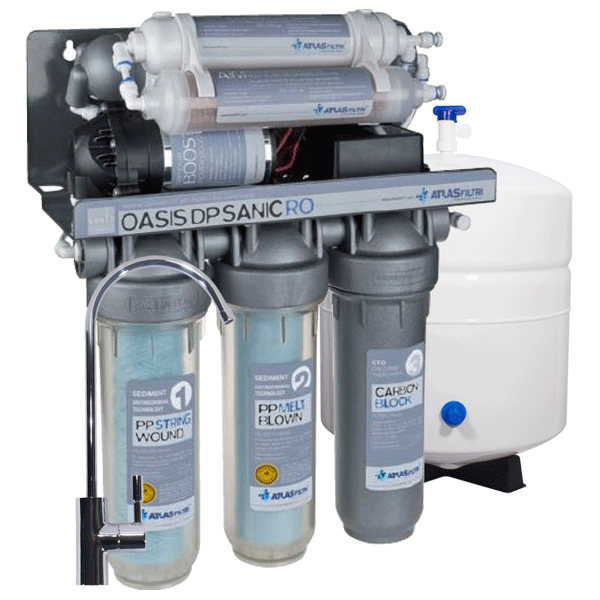 Новейшая разработка компании Atlas Filtri антибактериальный фильтр обратного осмоса Oasis DP Sanic Pump - состоит из четырёх стадий очистки воды, постфильтра и минерализатора. Система изготовлена из высококачественных материалов, что обеспечивает длительную и беспрерывную работу фильтра, а также гарантирует подачу качественной воды в вашей семье. Используемые картриджи обладают антибактериальными свойствами, производятся в Эвросоюзе и отвечают самым строгим стандартам качества.