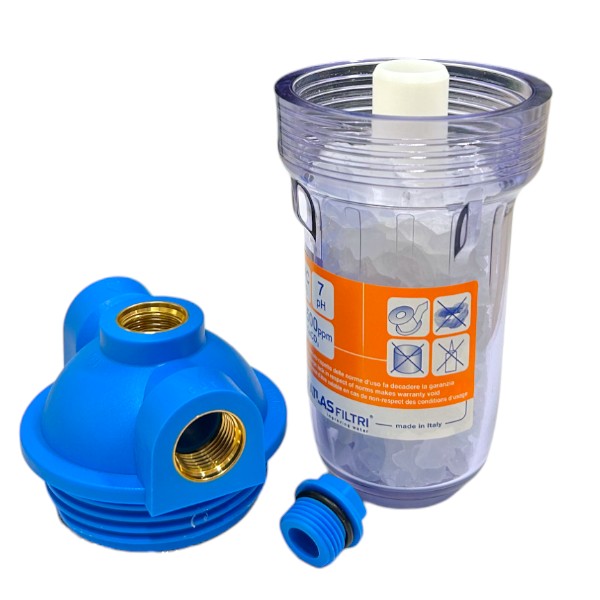 По мере пропускания через фильтр воды кристаллы растворяются. Фильтр можно легко перезарядить новыми кристаллами.
