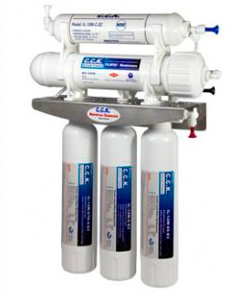 - Предварительная очистка воды для продления службы мембраны обратного осмоса состоит из трех ступеней. Картридж C.C.K. IL-12W-S5-E3 - производит очистку воды от механических загрязнений (песка, ржавчины, ила, окалины и др.) размером более 10 мкм. Угольные картриджи C.C.K. IL-12W-C-E3 и C.C.K. IL-12W-CTO-5-E3 - удаляют из води хлор, хлорсодержащие соединения, пестициды и большинство органических загрязнений. Все картриджи выполнены в специальном, быстросъемном корпусе, что значительно облегчает их замену.