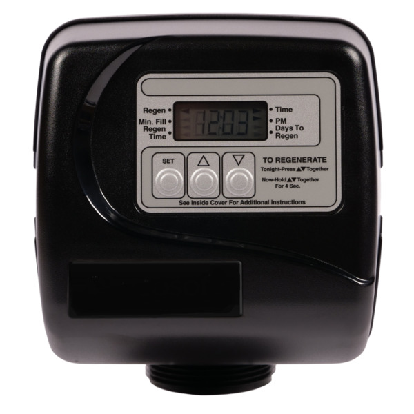 Данная модель клапана управления оснащена расходомером для возможности программирования обратной промывки или регенерации после прохождения определённого объёма воды через фильтрующую установку. Также можно задать интервал промывки в пределах между 1 до 99 дней или определённый день недели.
