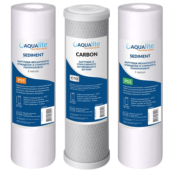 Набор картриджей Aqualite OSMO CTO предназначен для подготовки воды перед основной очисткой мембранной обратного осмоса.