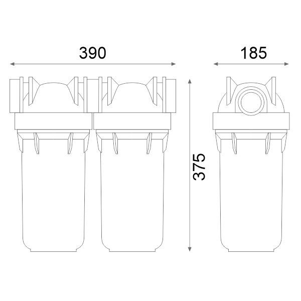 Двойной корпус фильтра для холодной воды формата Big Blue 10. Максимальное рабочее давление: 8бар. Диапазон рабочих температур: 4-45 °С. Тип соединения: резьбовое 1”. Материал корпуса: усиленный полипропилен. Материал соединения: полипропилен. Размер: 375*390*185мм. Комплектация: корпус, ключ, кронштейн. Производитель: Atlas Filtri Srl., Италия.