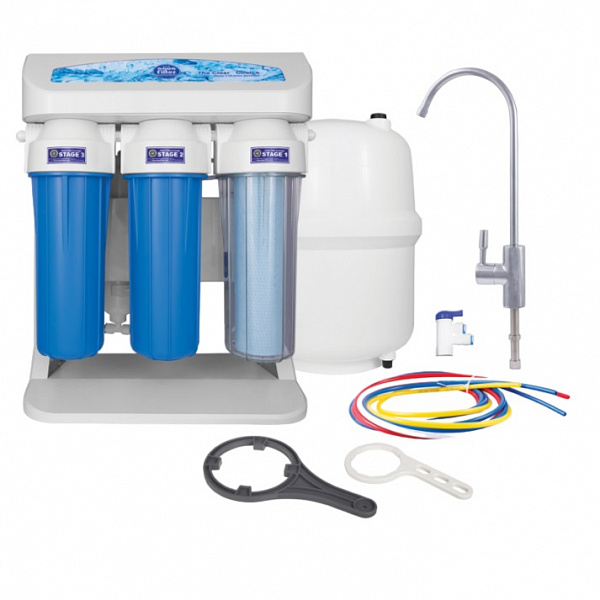 Она устанавливается под кухонную мойку и обеспечивает чистой водой, а благодаря минерализатору вода приобретет натуральный, родниковый вкус.