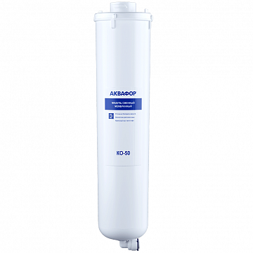 Модуль Аквафор КO-50S (RO-50S) - это мембранный заменяемый элемент. Высококачественный очистительный картридж применяется в фильтрах обратного осмоса Акавафор Кристалл и Морион DWM-101. Он представляет собой мембрану обратного осмоса помещенную в корпусе. Сменный модуль способен на 99,9% от всех возможных загрязнителей, деминерализует воду и делает ее прозрачной.