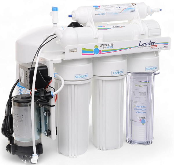 Система обратного осмоса Leader RO-5 P состоит из 5 стадий очистки воды и повы шающего насоса: