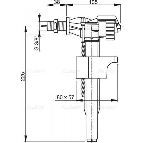 Впускной механизм AlcaPlast A16 3/8" с боковой подводкой и металлической резьбой 3/8" для пластиковых бачков. Заливной клапан соответствует требованиям звукоизоляции акустической группы 1 и заполняет сливной бачок бесшумно.