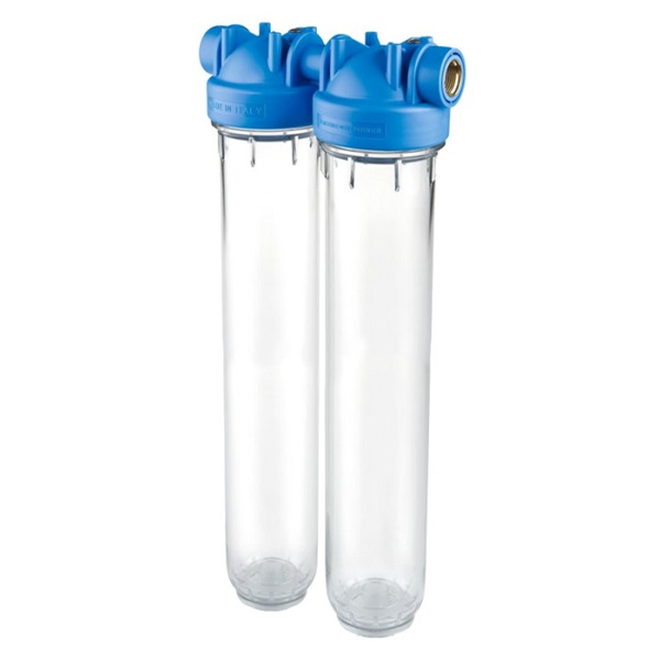 Универсальный двойной корпус фильтра стандарта 20”. Такой фильтр совместно с картриджами подходит для очистки воды как в квартире так и в загородном доме. При установке соответствующих картриджей позволяет проводить очистку воды от хлора, железа, снижать жесткость и т.д.