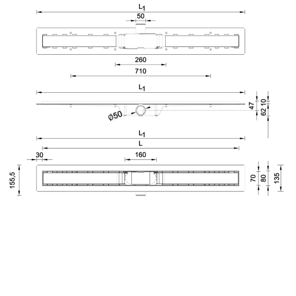 Габаритные (монтажные размеры): 860 x 180 x 80мм