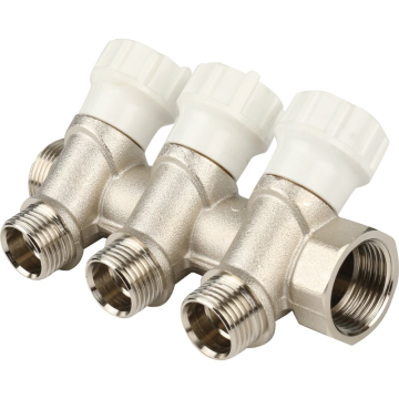 Распределительный коллектор с перекрывающими вентилями с выходами НР подходит для фитингов для медных, PEX, полибутиленовых или металлопластиковых трубопроводов.