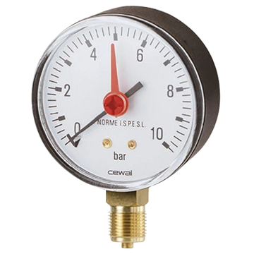 Манометр горизонтальный производства фирмы Cewal - предназначен для измерения давления до 10 бар. Подключение 1/4".