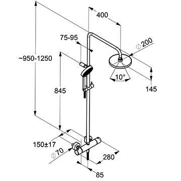 Душевая система настенного монтажа с термостатом