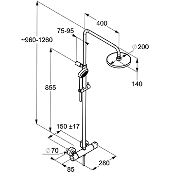 эксцентрический ввод G1/2 расстояние 150 ± 20 мм