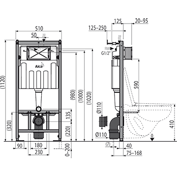 Скрытая система инсталляции для сухого монтажа AlcaPlast AM101/1120 Sadromodul для установки подвесного унитаза с интервалом крепления 180 мм или 230 мм.