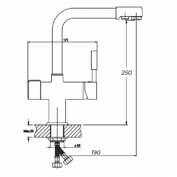 Высота - 280 мм. Подключение - 1/2". Материал - латунь, черный. Применение - для водопроводной, очищенной воды. Производитель - Китай. HB0840