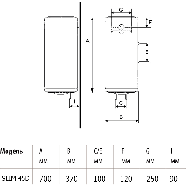 Электрический водонагреватель Bandini Braun Slim 45 – электрический водонагреватель с номинальной мощностью 2000 Вт и баком на 45 л воды. Бак водонагревателя снаружи имеет изоляцию, поэтому потери тепла через поверхность – минимальные, а внутри бак покрыт специальной антикоррозийной эмалью, которая имеет отменные показатели стойкости к высоким температурам и коррозийным поражениям.