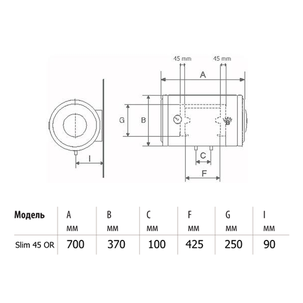 Электрический водонагреватель Bandini Braun Slim 45 OR – электрический водонагреватель с номинальной мощностью 2000 Вт и баком на 45 л воды. Бак водонагревателя снаружи имеет изоляцию, поэтому потери тепла через поверхность – минимальные, а внутри бак покрыт специальной антикоррозийной эмалью, которая имеет отменные показатели стойкости к высоким температурам и коррозийным поражениям.