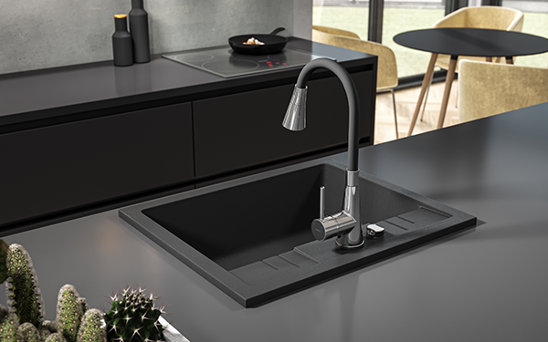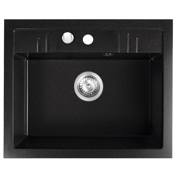 Прямоугольная кухонная мойка Ferro MEZZO II DRGM1/48/58BA оборудована чашей без крыла, имеет габаритные размеры 58х48х17,6 см. В комплект поставки входит сифон, система переливания и автоматическая смывная затычка. Модель имеет отверстие для установки смесителя и переливное отверстие.