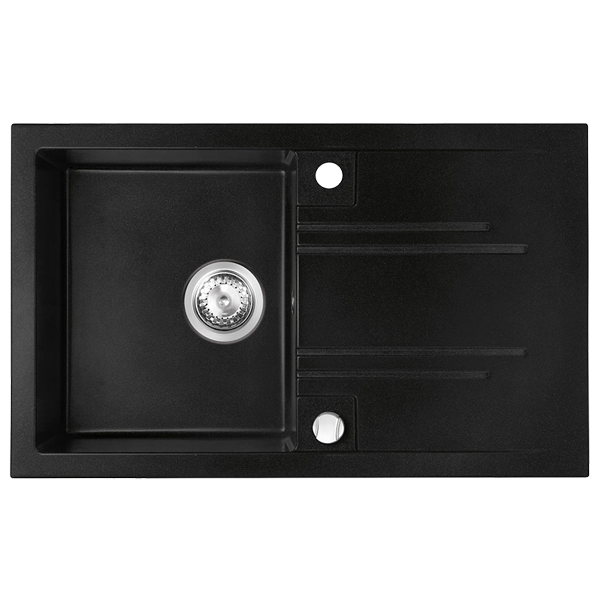 Прямоугольная кухонная мойка Ferro MEZZO II DRGM/48/78BA оборудована чашей с крылом, имеет габаритные размеры 78х48х17,7 см. В комплект поставки входит сифон, система переливания и автоматическая смывная затычка. Модель имеет отверстие для установки смесителя и переливное отверстие.