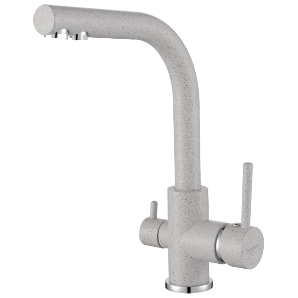 Отличительной чертой смесителя Akvaduo является второй выход, специально предназначенный для подачи воды непосредственно из системы очистки воды и избавляет вас от необходимости устанавливать дополнительный кран на мойке. Потоки очищенной и водопроводной воды не смешиваются благодаря высококачественному керамическому картриджу, для подачи очищенной воды предусмотрена отдельная ручка.
