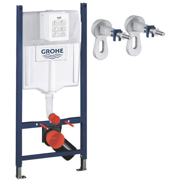 Комплект для установки подвесных унитазов любых производителей с межосевым расстоянием под крепежные шпильки 18 см или 23 см - Grohe Rapid SL укомплектован всем необходимым для монтажа. Монтаж может осуществляться как перед капитальной стеной, так и пустотелой перегородкой. В комплект Grohe Rapid SL входит застенный модуль, комплект для крепления. Застенный модуль может выдерживать вес до 400 кг, оборудован баком емкостью 9 л, который изготовлен из ударопрочного и стойкого к низким температурам материала.