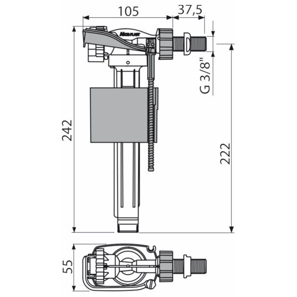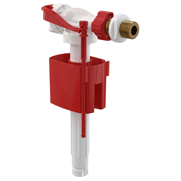 Впускной механизм AlcaPlast A160 3/8" с боковой подводкой и металлической резьбой 3/8" для керамических бачков. Заливной клапан соответствует требованиям звукоизоляции акустической группы 1 и заполняет сливной бачок бесшумно.