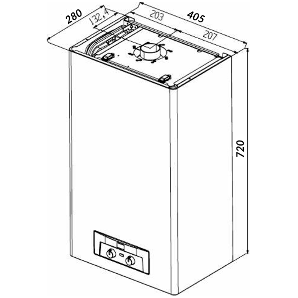Встроенный блок электронного управления обеспечивает электронный розжиг горелки и контроль горения, а также непрерывно модуляцию газа