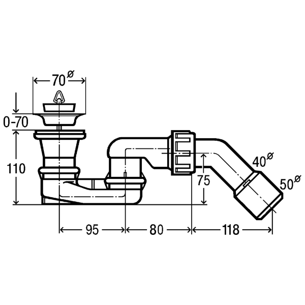 Сифон для душевых поддонов с водосливным отверстием Ø 52мм.