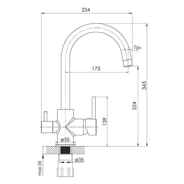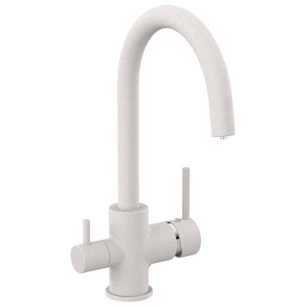 Отличительной чертой смесителя Daicy-U является второй выход, специально предназначенный для подачи воды непосредственно из системы очистки воды и избавляет вас от необходимости устанавливать дополнительный кран на мойке. Потоки очищенной и водопроводной воды не смешиваются благодаря высококачественному керамическому картриджу, для подачи очищенной воды предусмотрена отдельная ручка.