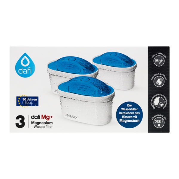 Unimax Mg+ предназначены для фильтрации больших объёмов воды, и поэтому рекомендуются тем, кто готовит много и часто. С помощью этих картриджей можно легко и быстро (1-2 минуты) отфильтровать воду в кувшине для приготовления первых блюд. В зависимости от уровня жёсткости воды картридж эффективно работает около 30 дней. После этого нужно заменить картридж на новый, чтобы в доме всегда была чистая и вкусная вода.