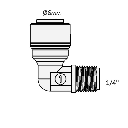 Угловой фитинг 4ME4 предназначен для подключения пластиковой трубки Ø6 мм (1/4") к оборудованию с наружной резьбой 1/4". Угловая форма (90°) позволяет изменять направление трубки без перегибов, особенно в условиях ограниченного пространства.