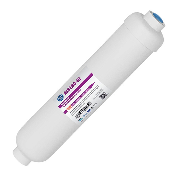 AQUAFILTER AISTRO-DI – это новая серия фильтрующих картриджей для деионизации. Картриджи заполнены смесью как катионных, так и анионных ионообменных смол. Картриджи в основном используются в качестве последней ступени фильтрации воды после мембраны обратного осмоса. Они эффективно удаляют оставшиеся ионы, оставляя полностью деионизированную воду.