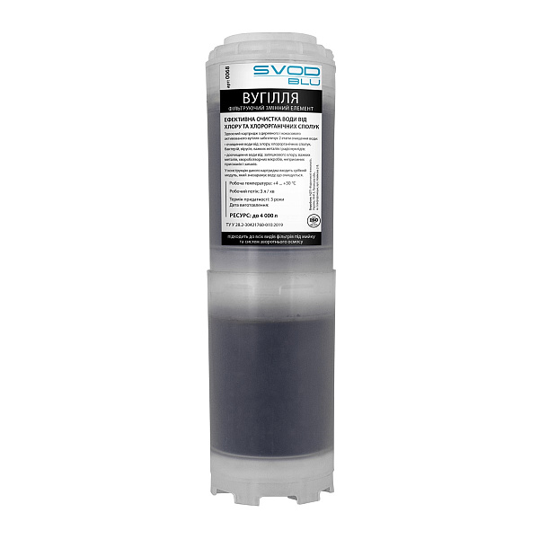 Картридж SVOD-BLU — это эффективный фильтрующий элемент для бытовых систем очистки воды. Благодаря комбинации древесного и кокосового активированного угля картридж осуществляет двухступенчатую очистку воды от хлора, органических соединений, бактерий, вирусов, тяжёлых металлов и радионуклидов. Серебряный модуль в составе обеспечивает дополнительное обеззараживание.