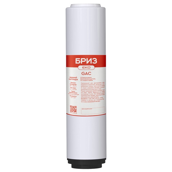 Картридж с активированным углем Бриз Эко GAC Ø70x250мм 45°C (очистка от хлора и органических загрязнений) BRKE891