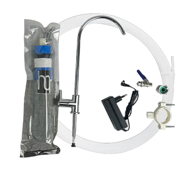 - Установите систему под мойкой и подключите к холодной воде с помощью комплекта подключения