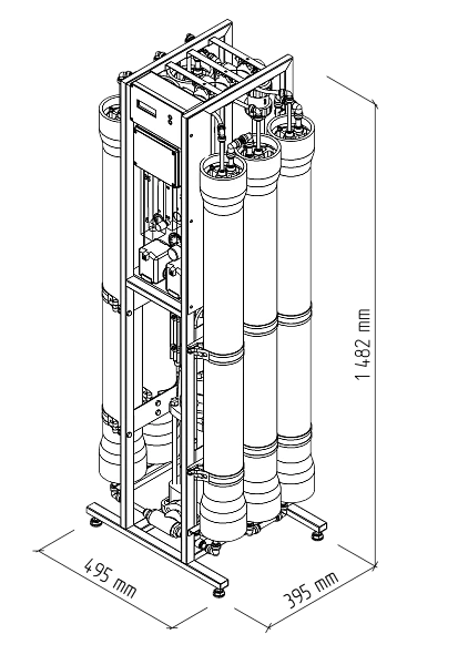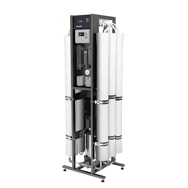 Ecosoft MO30000 — коммерческая система обратного осмоса для получения большого объёма очищенной воды (пермеата) в HoReCa, на производстве и в технологических процессах. В данной комплектации система поставляется без мембран, поэтому мембраны подбираются отдельно под качество исходной воды и требования к производительности.