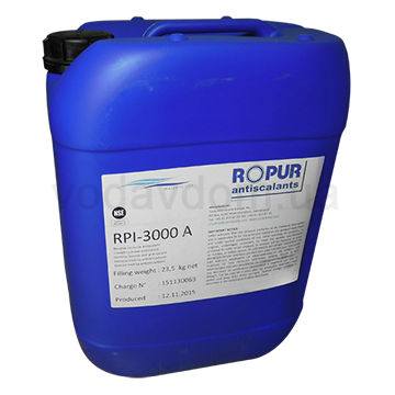 Спеціалізований інгібітор солеутворення (антискалант) Ropur RPI 3000A призначений для захисту мембран зворотного осмосу і продовження їх терміну служби. Запобігає утворенню карбонату кальцію, сульфату кальцію, сульфату барію і стронцію на поверхні мембрани. Додатково Ropur RPI 3000A частково стабілізує колоїдне залізо, а сополімери, що знаходяться в його складі діють в якості диспергируючих реагентів для органічних забруднень і оксидів металів.