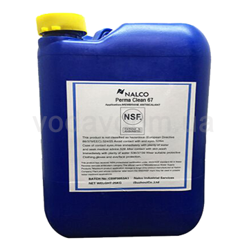 PermaClean 67 розроблений для очищення фільтрів зворотного осмосу (RO), нанофільтрації (NF) і ультрафільтрації (UF). PermaClean 67 являє собою препарат на основі анионного поверхнево-активної речовини і є високоефективним при видаленні колоїдного і іншого органічної речовини. При використанні в поєднанні з Мікробіоціди, такими як PermaClean 11 і PermaClean 55, він ефективний проти біоплівки.