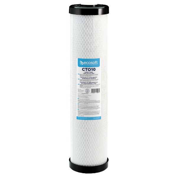 Картридж Ecosoft CTO20 використовує спресоване активоване вугілля, що ефективно абсорбує хлор, органічні домішки та інші забруднення з води. Вода проходить через щільний шар вугілля, де відбувається її очищення, видалення запахів та покращення смаку.