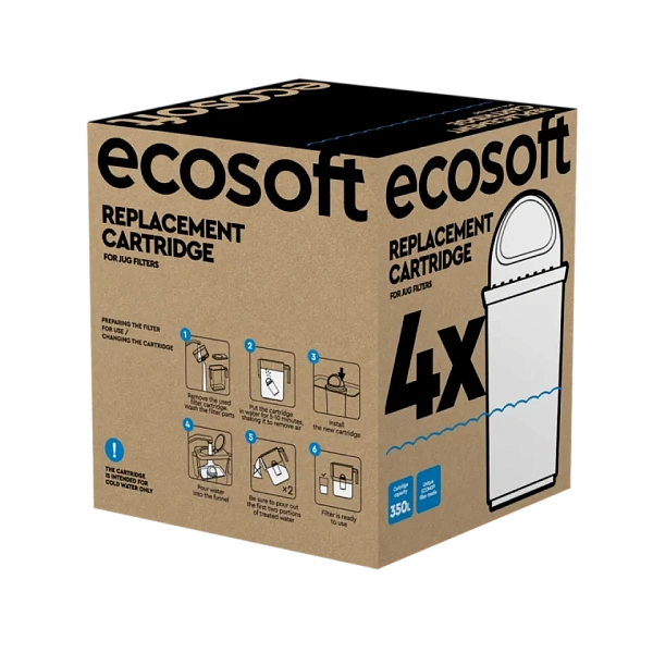 Комплект із чотирьох змінних картріджів для фільтра-кувшина включає 5 ступенів фільтрації води: