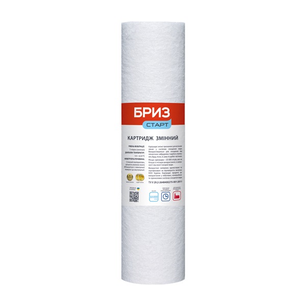 Картридж Бриз Старт РР (5 мкм) призначений для очищення водопровідної води від механічних забруднень, таких як бруд, мул, іржа та дрібні зважені частки розміром більше 5 мкм. Використовується в системах очищення води Бриз Старт Стандарт, Бриз Старт Оптима та інших одно- і багатоступінчастих системах.