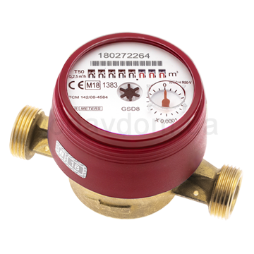 Одноструйний лічильник з сухим квдрантом і прямим зчитуванням з 8 цифрових роликів. Циферблат лічильника обертається на 360°, що дає можливість розмістити його як вертикально так і горизонтально. Виключені ризики корозії і утворення осаду. Гарантія довговічності і високої точності. Сертифікований за стандартами ЄС.