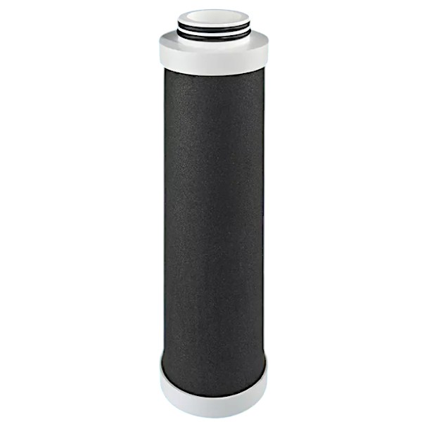 Картридж "карбон-блок" з активованим спресованим вугіллям рослинного "екологічного" походження. Дозволяє очистити воду від дрібних домішок, знижує смак і запах хлору (CTO), а також видаляє леткі органічні сполуки (VOC). Завдяки сріблу, включеному до складу, картридж запобігає росту і розмноженню бактерій.
