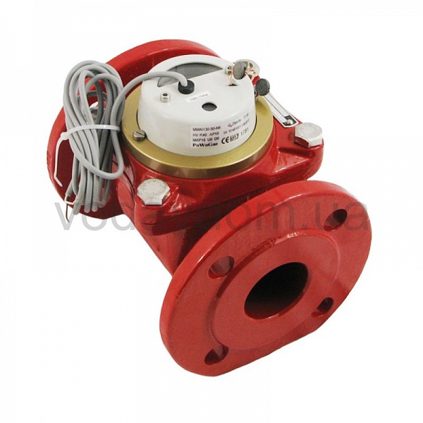 Промисловий лічильник гарячої водопровідної води Apator MWN 130-50-NK ГВ призначений для обліку води, що витрачається на промислових підприємствах де потрібна велика кількість води. Пропускна здатність даної моделі - 15000 л/год при тиску не більше 16 бар. На відміну від моделей з меншим номінальною витратою лінійка лічильників Apator MWN оснащується турбіною, саме вона і забезпечує підвищену пропускну швидкість подачі води.