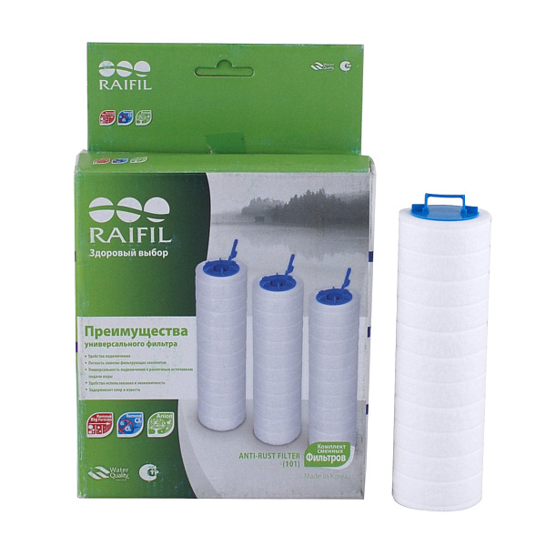 Спеціальний картридж до фільтру Raifil PS-101 - забезпечує очищення води від хлору а також нормалізує рН води завдяки своїй конструкції при якій вода проходить три стадії очищення: